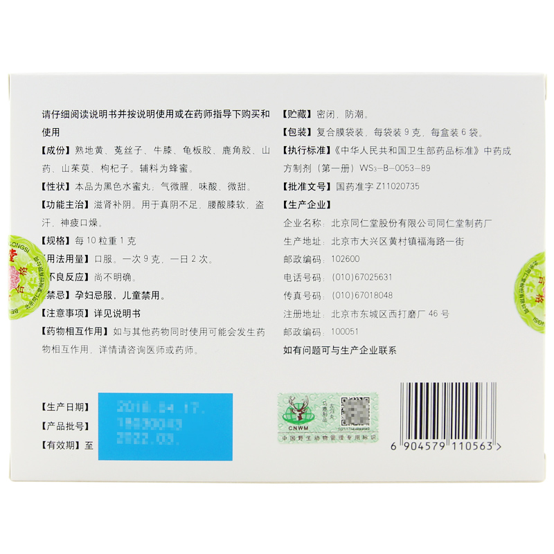 【生产厂家】北京同仁堂股份有限公司同仁堂制药厂