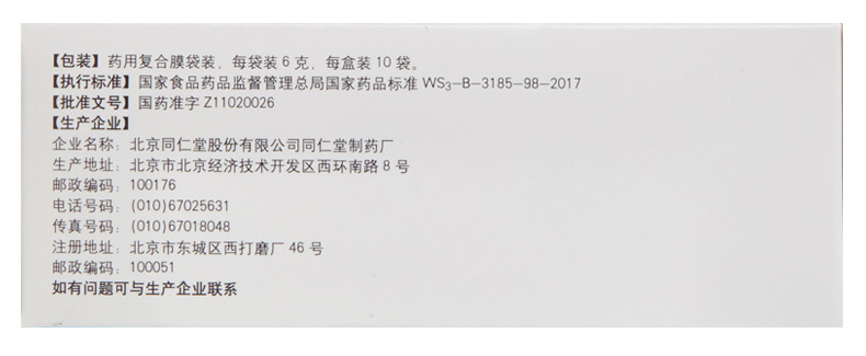 【生产厂家】北京同仁堂股份有限公司同仁堂制药厂