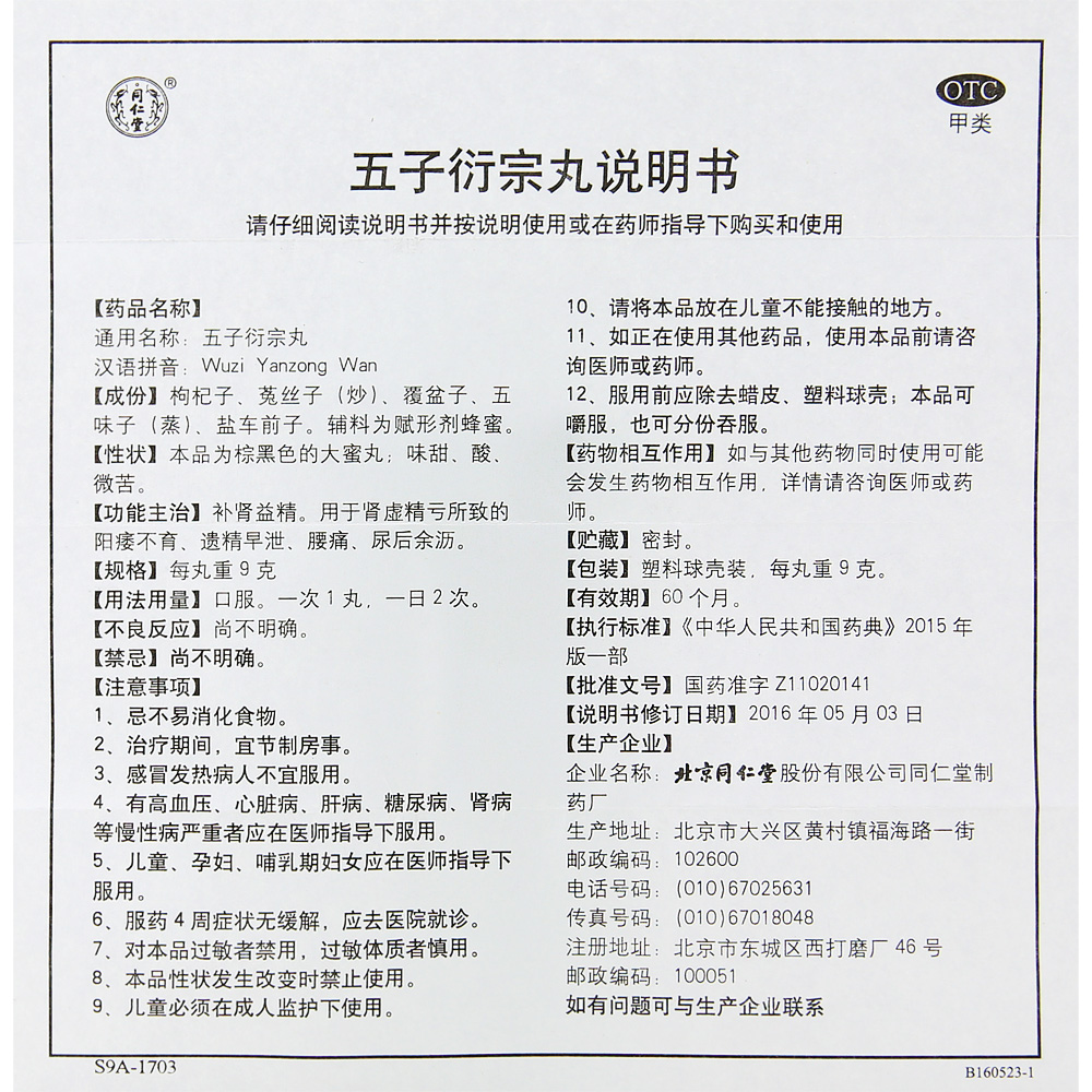 【商品名称】五子衍宗丸