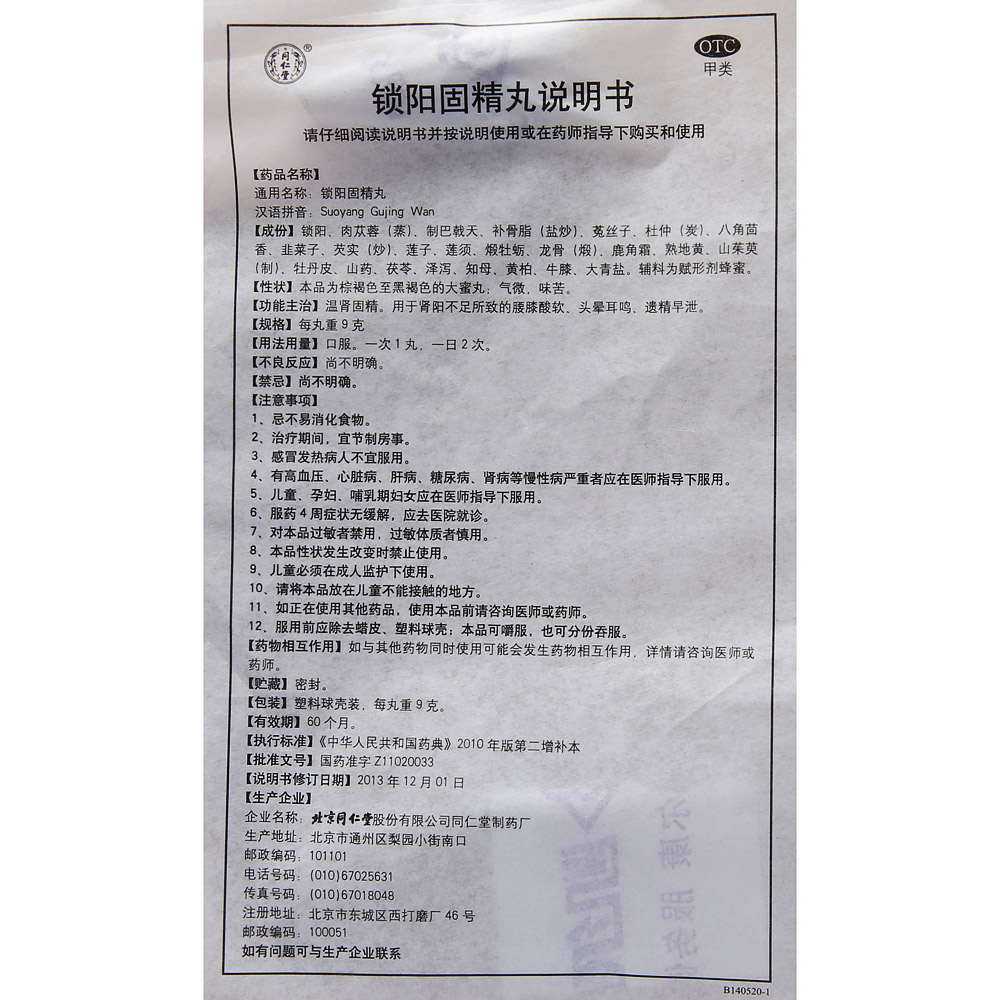 【功能主治】温肾固精。用于肾阳不足所致的腰膝酸软、头晕耳鸣、遗精早泄。 详见说明书。