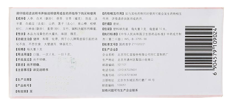 【生产厂家】北京同仁堂股份有限公司同仁堂制药厂