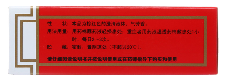 【用法用量】用药棉蘸药液轻搽患处;重症者用药液湿透药棉敷患处1小时,每日2~3次。