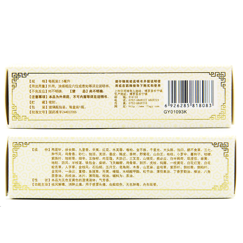 【功能主治】祛风解毒,消肿止痛。用于感冒头痛,虫蚊咬伤,无名肿毒,舟车眩晕。 详见说明书。